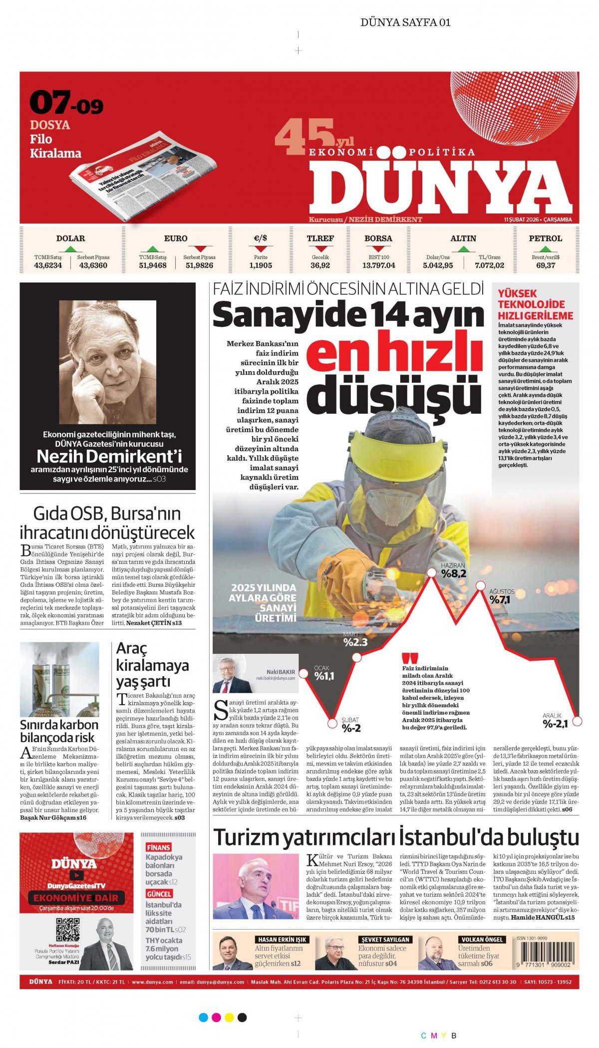 Dünya Gazetesi 12 Şubat 2026 Günü Manşeti